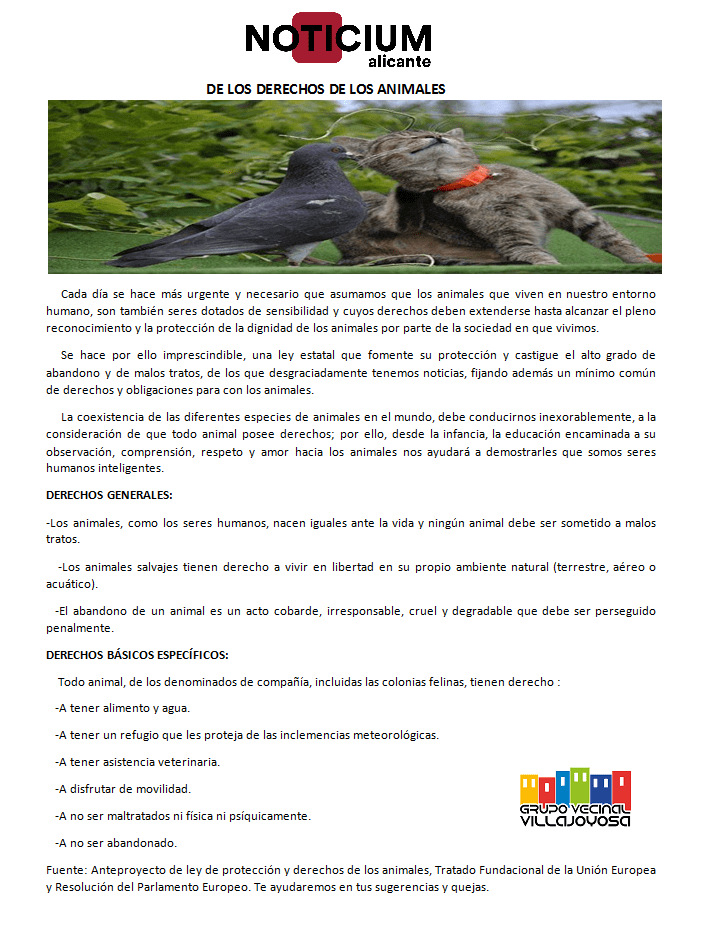 Cada da se hace ms urgente y necesario que asumamos que los animales que viven en nuestro entorno humano, son tambin seres dotados de sensibilidad y cuyos derechos deben extenderse hasta alcanzar el pleno reconocimiento y la proteccin de la dignidad de los animales por parte de la sociedad en que vivimos.
