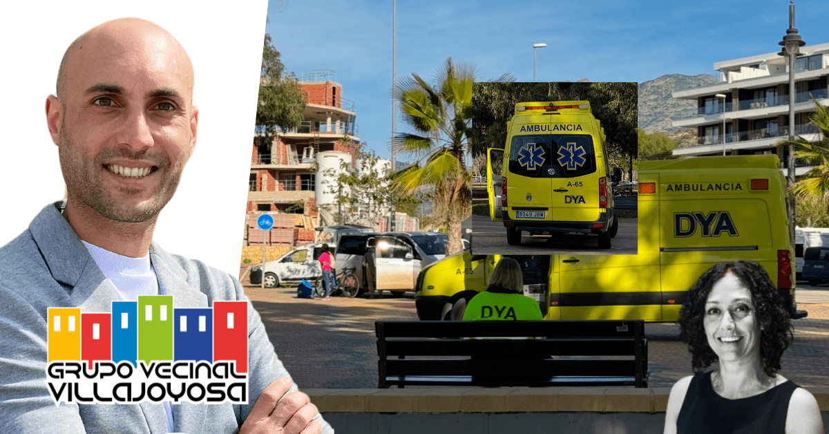 VECINOS DENUNCIAN EN LA GUARDIA CIVIL Y TRANSPORTES GVA QUE EL AYUNTAMIENTO DE VILLAJOYOSA DEL PP HA VUELTO A DESTINAR UNA AMBULANCIA ILEGAL CADUCADA PARA ATENDER LOS AVISOS DE EMERGENCIAS Y UNA COMPETICION DEPORTIVA EN EL TORRES