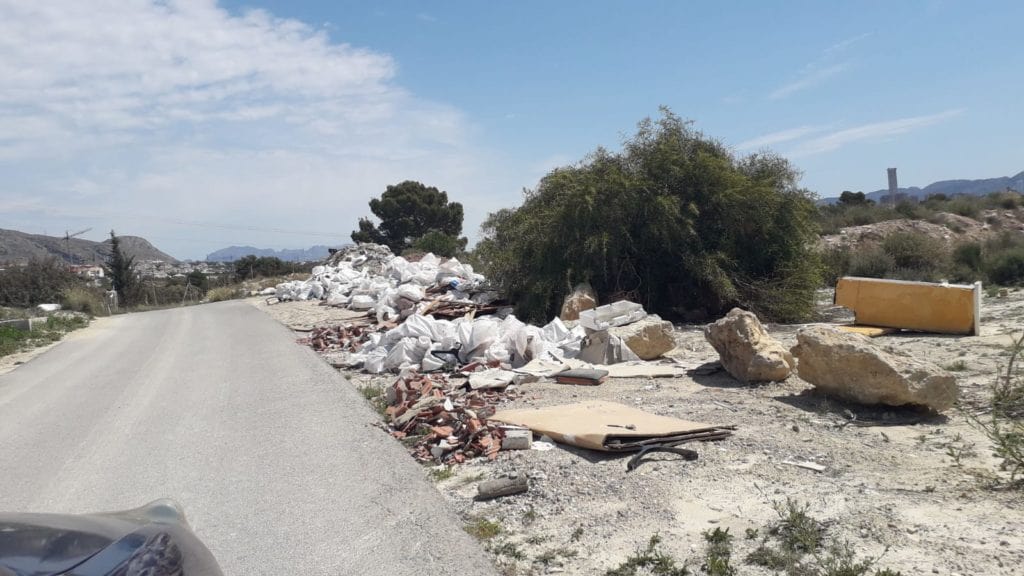 Grupo Vecinal Villajoyosa sigue denunciando la mala gestin poltica de la localidad, el descontrol con los vertidos ilegales ha creado un enorme vertedero detrs del Hospital Marina Baja en el camino que lleva hasta el Centro Comercial