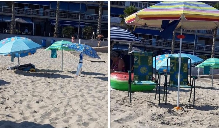 Los vecinos piden a la polica local que retire los utensilios que reservan espacios en los arenales en primera lnea al amanecer