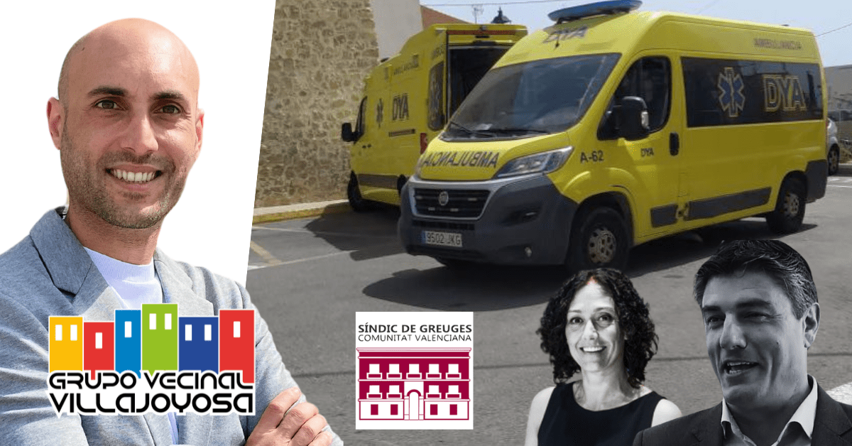 El Sindic de Greuges (defensor del pueblo de la Comunidad Valenciana) inicia una investigacin tras la reclamacin abierta por el Grupo Vecinal Villajoyosa ante el Ayuntamiento de la localidad vilera gestionado por el Partido Popular al no entregar la documentacin solicitada desde septiembre sobre las ambulancias con la tarjeta de transporte pblico e inspeccin tcnica sanitaria y sobre el registro de horas de personal de emergencias despus de que tras un accidente se descubriese que los conductores realizan hasta 72 seguidas de servicio por no tener relevos.
