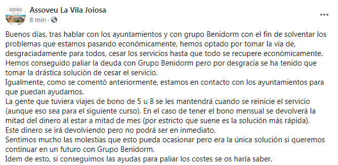El Grupo Vecinal Villajoyosa, ha solicitado por registro al Ayuntamiento de Villajoyosa que destine los recursos necesarios para garantizar el funcionamiento del servicio de transporte universitario para los jvenes vileros estudiantes desde la localidad.
